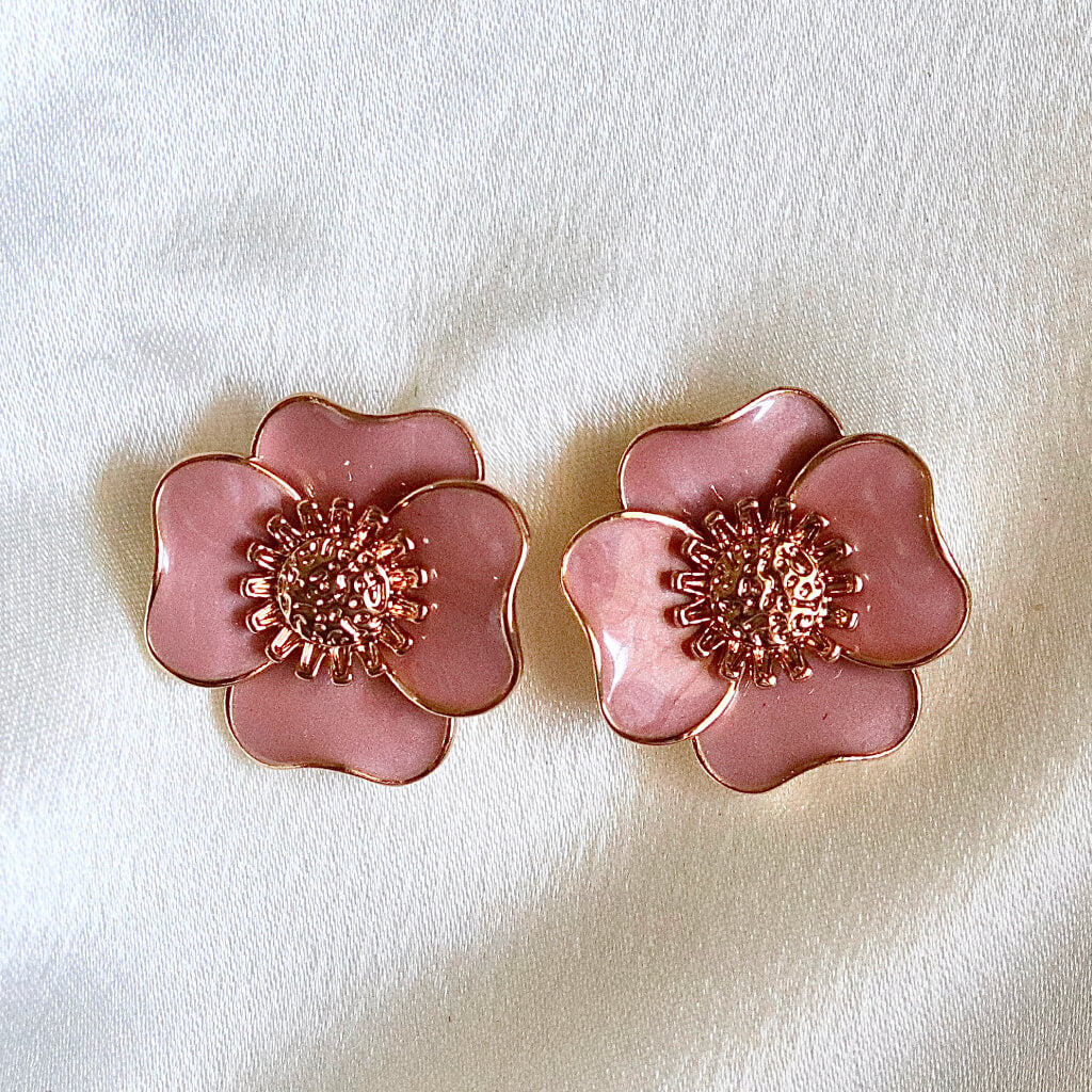 Finish: Glossy enamel petals with a textured metal centerpiece.
