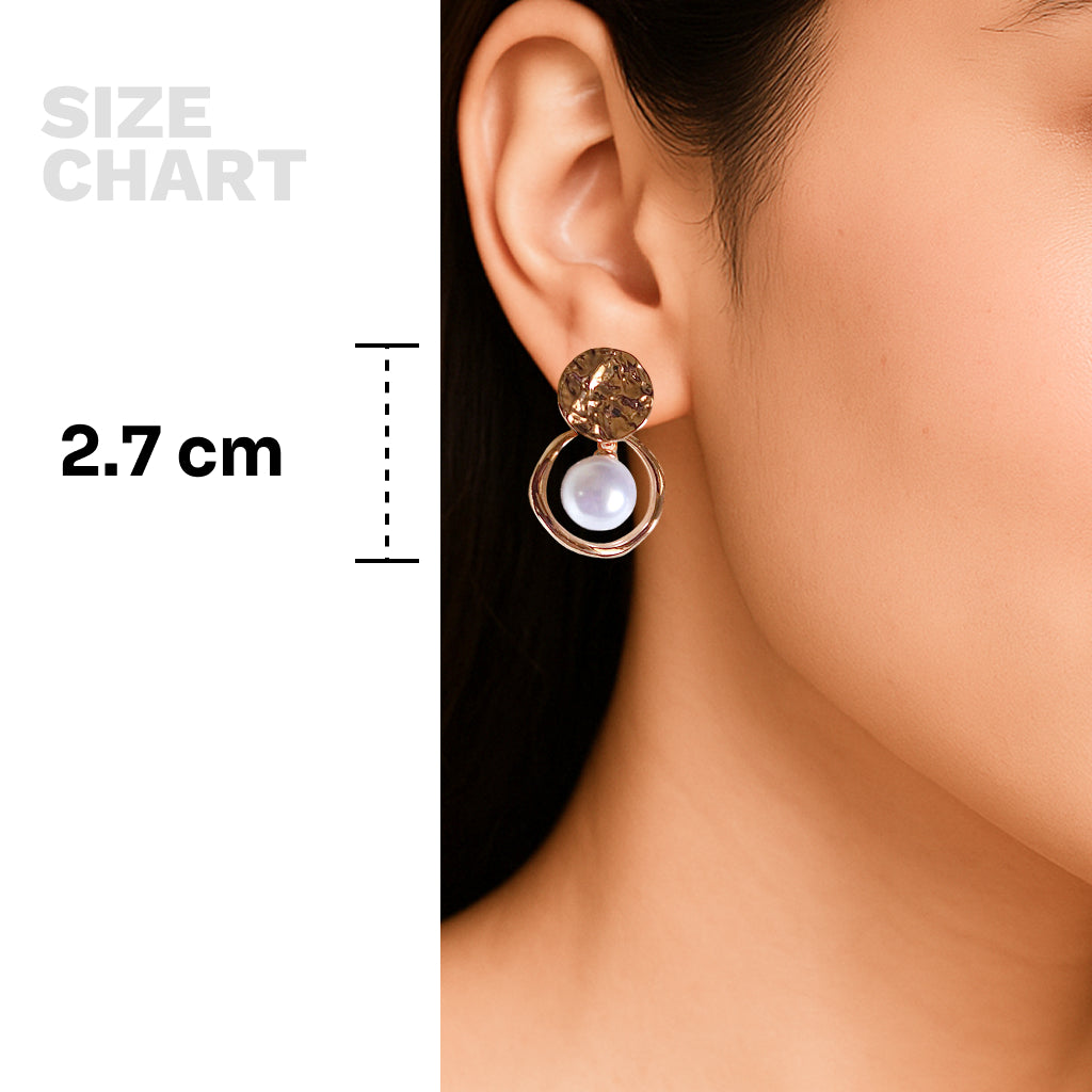 Raw texture meets timeless elegance in our Pebble Glow Earrings. Featuring a hammered gold-tone stud inspired by natural river pebbles, each earring flows into a twisted hoop cradling a luminous faux pearl — a perfect blend of earthy imperfection and polished beauty.