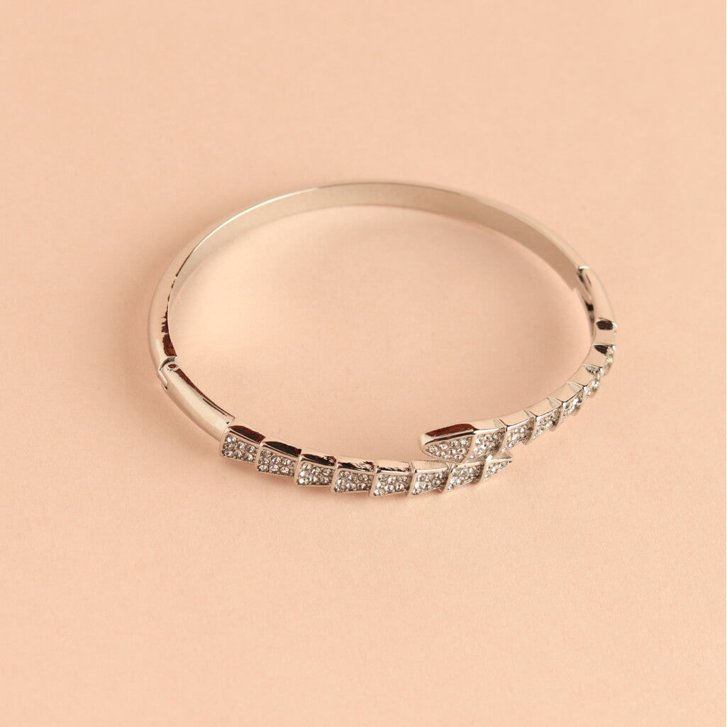 A statement of power and elegance. This Silver Arrow Bracelet is designed with a striking open arrowhead silhouette, encrusted with pavé-set crystals that catch the light from every angle. Bold yet refined, this piece is perfect for those who love mixing modern minimalism with a hint of glam.